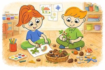 Ein Morgenangebot für Kinder ab 2.5 Jahren, das Atelier, Natur und Bewegung verbindet.